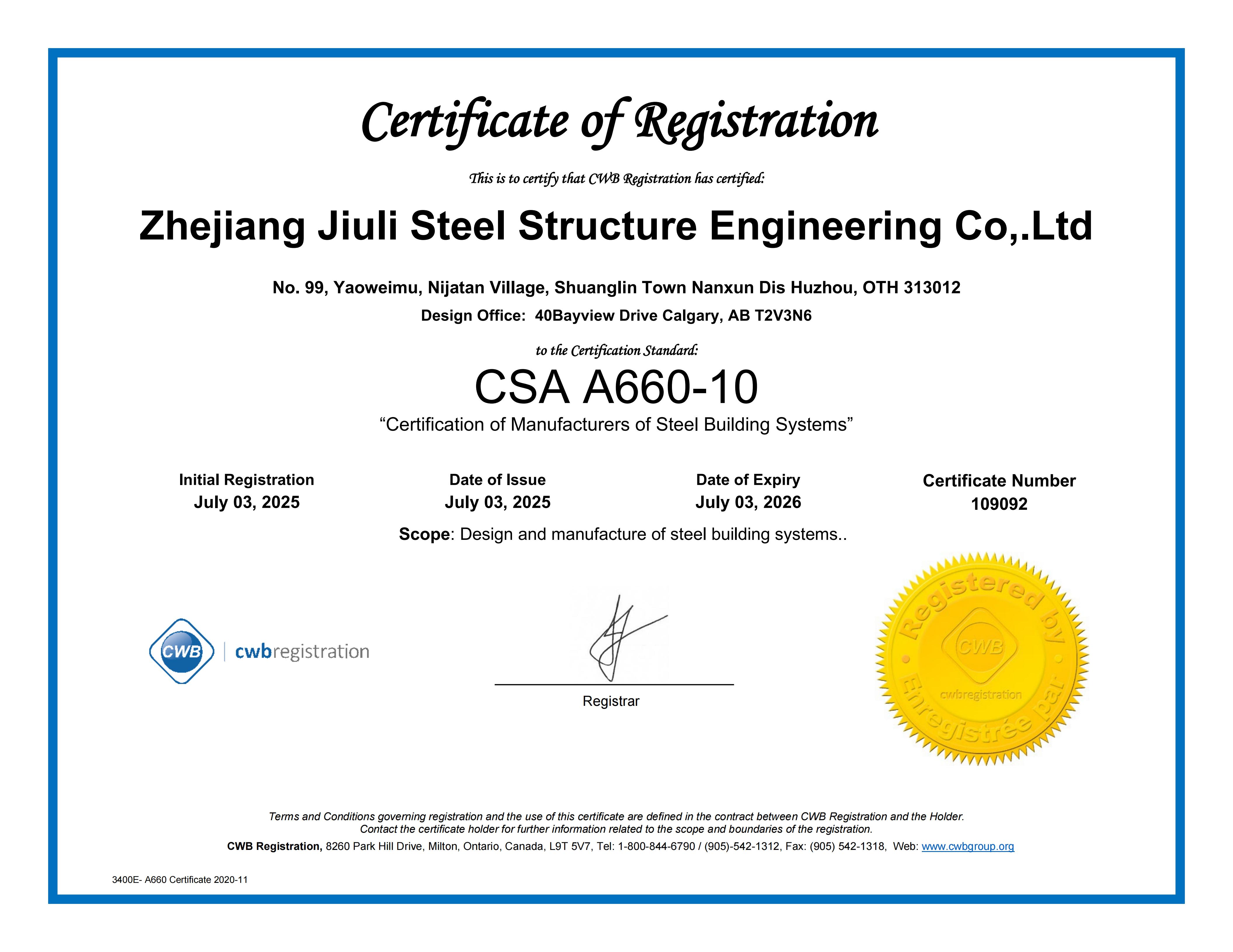 公司建有完善的質(zhì)保體系,通過(guò)了IS09001:2015 質(zhì)保體系的認證。擁有建設部頒發(fā)的建筑工程施工總承包貳級、鋼結構專(zhuān)業(yè)承包壹級資質(zhì)、制造特級資質(zhì)。專(zhuān)業(yè)承接各類(lèi)工業(yè)與民用工程的建設,鋼結構的設計、制造和安裝。公司立足國內市場(chǎng),目前已在全國建立多個(gè)營(yíng)銷(xiāo)辦事處,逐步形成了輻射全國的營(yíng)銷(xiāo)網(wǎng)絡(luò ),并積極參與國際競爭,公司擁有加拿大焊接協(xié)會(huì )資格論證的加拿大 CWB 證書(shū),美標 AISC 證書(shū),歐標EN1090和IS03834 證書(shū),可承接來(lái)自歐美、澳洲等有特殊要求鋼構件的出口加工,已成功地在非洲馬達加斯加國及博茨瓦納設立了分公司久立鋼構是湖州地區率先進(jìn)入國際市場(chǎng)的建筑企業(yè)之一。